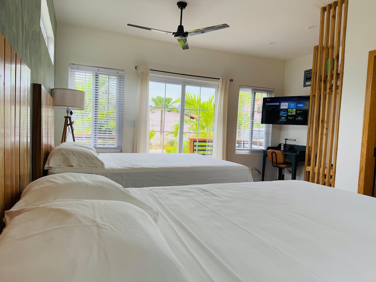 Séjournez dans notre cabane moderne, à quelques pas de la plage, dans une communauté animée de Garifuna. Profitez de la climatisation, d'une télévision connectée et d'une connexion Wi-Fi rapide dans un espace élégant et compact conçu pour le confort. Plongez dans la culture locale et détendez-vous avec style avec tout le nécessaire à portée de main. Explorez les attractions à proximité ou détendez-vous simplement au bord de l'eau. Votre retraite parfaite au bord de la plage vous attend !