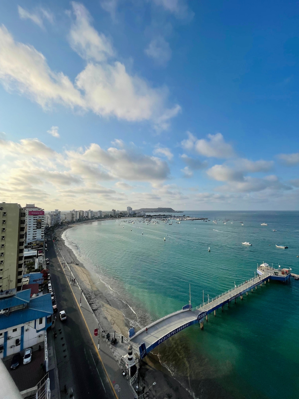 Appartement confortable au 7e étage avec vue spectaculaire sur la mer, belle plage, entièrement meublé. Nous avons 3 chambres, 2 salles de bains complètes avec eau chaude, climatisation, salle à manger, salon avec canapé et télévision, wifi, réfrigérateur, cuisine complète, ventilateur, balcon avec belle vue sur la mer, 2 piscines pour enfants, 1 piscine pour adultes. Nous sommes dans le secteur de la Milina. La copropriété s'appelle Torre Oceánica et nous sommes à 1 pâté de maisons de l'Hostería el Faro et à 4 pâtés de maisons du Supermaxi.