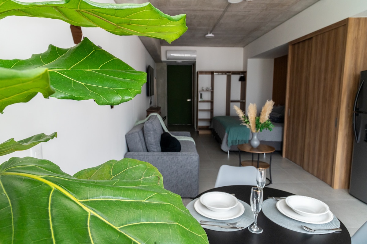 Parfait pour les couples ou les voyageurs en solo à la recherche de style et de confort. Ce loft moderne offre des intérieurs spacieux, une connexion Wi-Fi haut débit, la climatisation et un sauna privé pour une détente ultime. Situé à Americana, vous êtes à quelques pas des cafés, des galeries, des restaurants et de la vie nocturne animée. Un séjour de qualité qui vous permet de découvrir le meilleur de Guadalajara avec élégance et facilité.