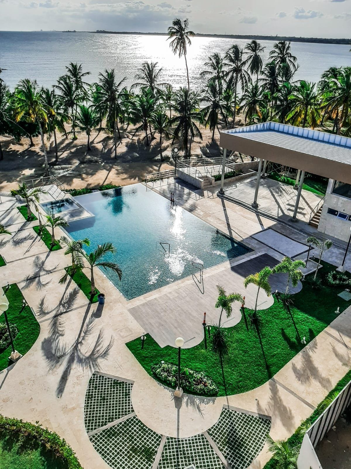 Chambre avec balcon donnant sur l'océan + vue sur le complexe hôtelier