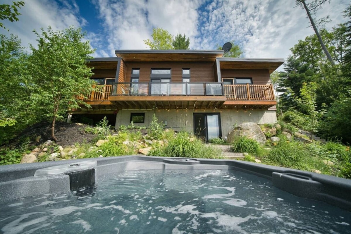 Pour un séjour mémorable et relaxant, choisissez le Chalet L'Envol des huards, sur flanc de montagne avec une vue époustouflante sur le coucher de soleil Vous apprécierez le chalet grâce à: ✷ Son terrain en pleine nature ✷ Sa luminosité ✷ Ses espaces luxueux et confortables ✷ Son spa ouvert à l'année ✷ Sa terrasse et son BBQ ✷ Son foyer intérieur au bois ✷ Ses tables de billard, de babyfoot et celle de Mississippi ✷ EV Chargeur 🚫Pas Check-in/Check-out les : -Samedis -25 Déc & 1er Janv