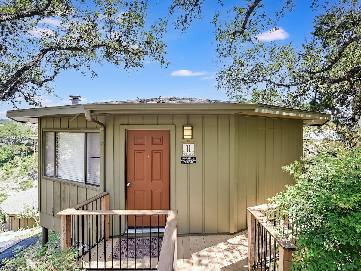 Villa au dernier étage au bord de l'eau avec vue sur l'eau profonde depuis le grand patio, le salon et la chambre. Emplacement pour bateau disponible (frais supplémentaires). Rencontres quotidiennes avec des cerfs. Admirez les couchers de soleil sur une île privée du lac Travis. Douche sur pied, jacuzzi, laveuse sécheuse, salon de fin de semaine/spa, restaurant, 3 piscines, jacuzzis, saunas, accès par ascenseur, centre de remise en forme, shuffleboard, WiFi, pickleball et tennis. 4 personnes maximum, y compris les bébés et les enfants. Plus de 21ans pour réserver. Plus de villas disponibles pour les familles. Seulement les gens sympas ! 😊