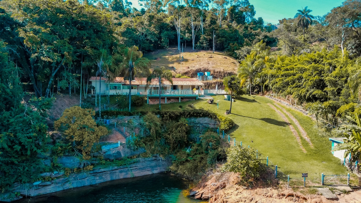 Notre ranch est sur les rives de la charmante mer des mines, situé à São José da Barra, mais très proche des principaux sites touristiques de Capitólio, une maison confortable, neuve et complète pour accueillir nos clients, un espace gastronomique incroyable, équipé, avec barbecue, cuisinière, réfrigérateur et même une brasserie tout cela avec la plus belle vue. Il peut accueillir jusqu'à 12 personnes réparties dans 3 chambres, dont une avec balcon et vue sur Rio. Il y a un bateau avec des promenades en bateau à moteur, sortant de notre flotteur.