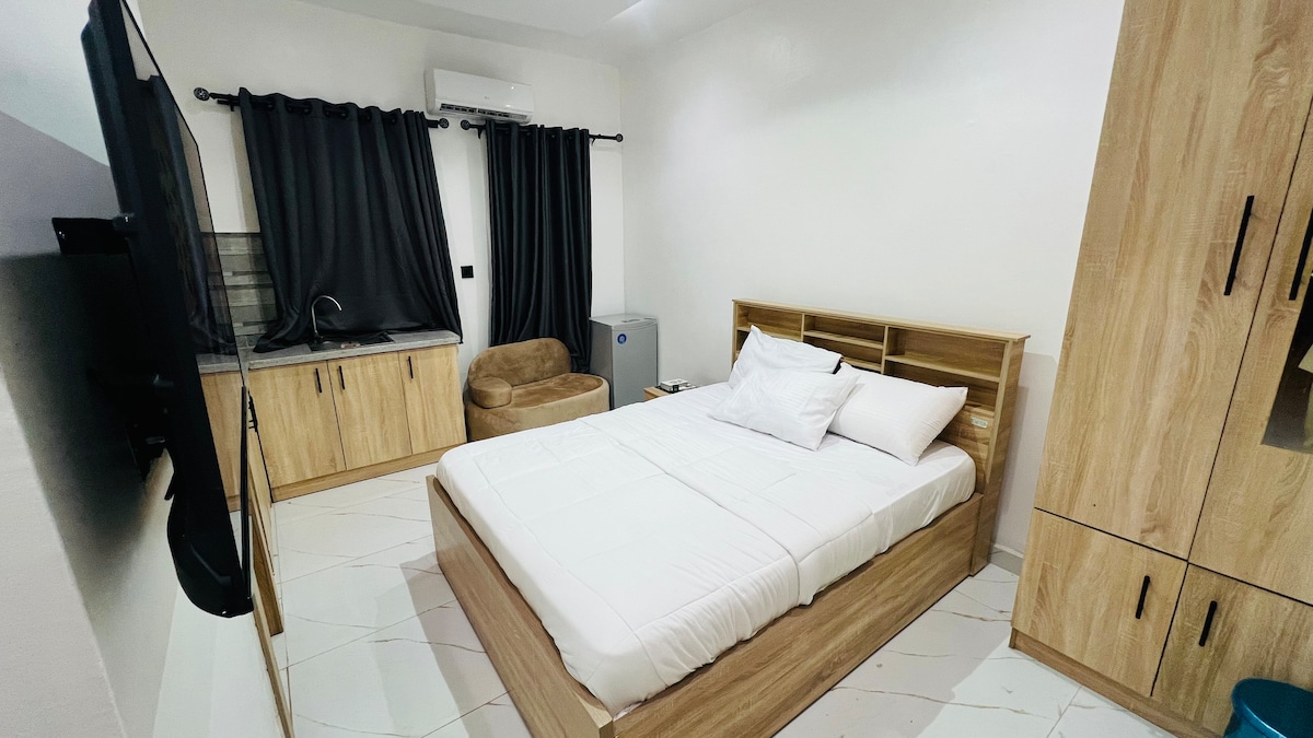 Bienvenue à Calia ! Il s'agit d'un studio chic et élégant conçu pour votre confort, situé dans le centre de Yaba. Alimentation électrique 24 h/24 et 7 j/7, avec un onduleur et un générateur entretenu à intervalles réguliers (veuillez noter que le climatiseur ne fonctionne pas avec l'onduleur et que le générateur ne fonctionne que pendant 5 heures). Nous sommes convaincus que vous apprécierez votre séjour