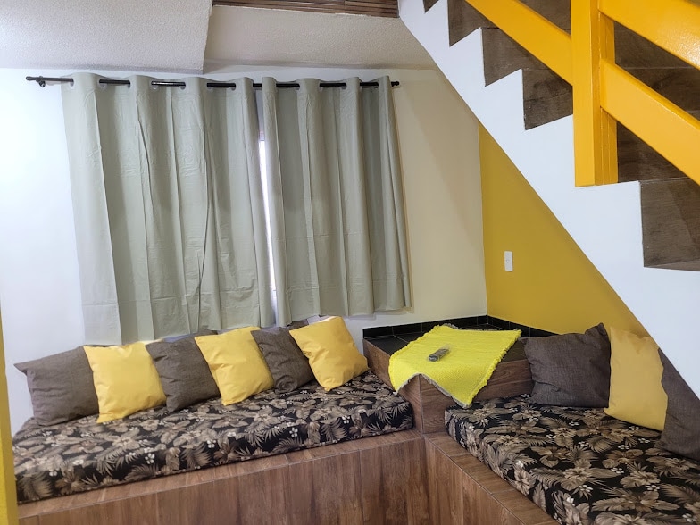 Voici l'ESPACE ITAPIRA, composé de quatre résidences de deux étages. Chaque résidence est entièrement indépendante et dispose de sa propre structure. La piscine et le barbecue sont partagés. Chaque appartement dispose de deux étages. Le premier étage se compose de : SÉJOUR/CUISINE, TOILETTES, TV, canapé-lit double flexible. À l'étage : SUITE AVEC BALCON, lit queen-size et un lit simple attenant, salle de bain confortable. Décoration moderne axée sur le bien-être dans une région paradisiaque
