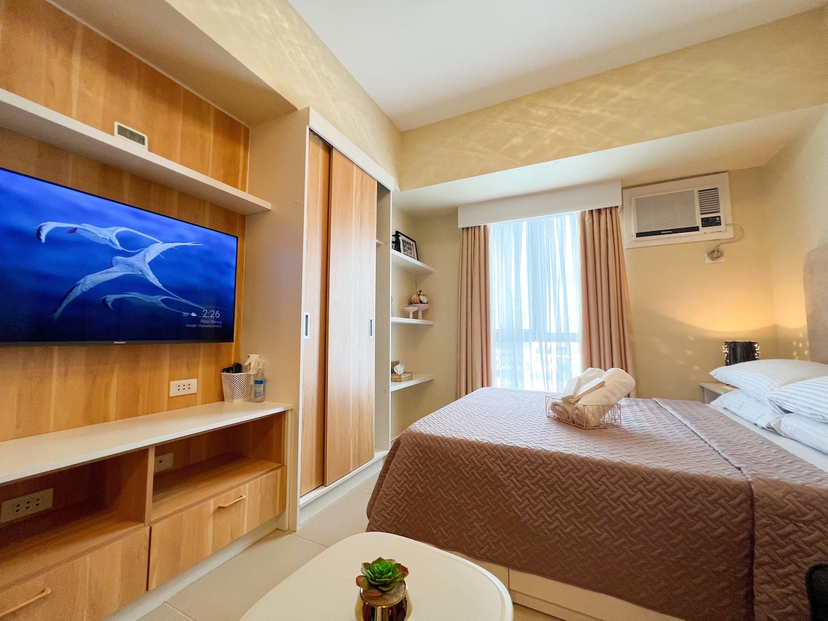 NOUVEAU condominium à IT PARK CEBU. BON environnement avec piscine, lieu sûr Près de restaurants célèbres, casino *Parking gratuit à l'intérieur de la copropriété (veuillez nous demander la disponibilité) * WIFI plus rapide gratuit (200 Mo/S), shampooing et savon, mouchoir * Store et rideau occultant Il s'agit d'un nouveau condominium situé dans le Sebitseom IT Park. Il s'agit d'un studio équipé d'un lit double, de la climatisation, d'une télévision, d'un câble, d'un bureau, d'un réfrigérateur, d'un micro-ondes, etc. Piscine incluse, sécurité privée, à distance de marche du casino Waterfront, restaurants français, pubs, bars, banques, cafés, dépanneurs. Il est à 3 minutes à pied de l'Ayala Central It Park, à 15 minutes du SM Mall/Ayala Cebu Mall et à 35-50 minutes de l'aéroport de Macao.