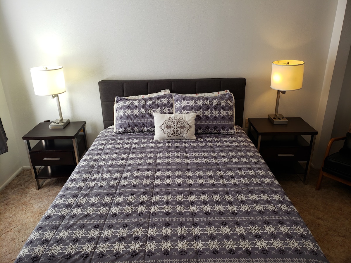 Belle casita d'une chambre située à côté du terrain de golf et du sentier de la jante. Cuisine entièrement équipée. Télévision connectée, Excellents équipements ! Les couchers de soleil sont incroyables et si vous êtes ici pour la régate en montgolfière ou le 4 juillet, vous allez vous régaler ! Le meilleur endroit pour ces deux événements ! Sortez sur le terrain de golf au coucher du soleil pour profiter d'une vue imprenable sur le canyon et le lac ! Emplacement idéal ! Nous ne pouvons accueillir AUCUN animal en raison d'allergies sévères.