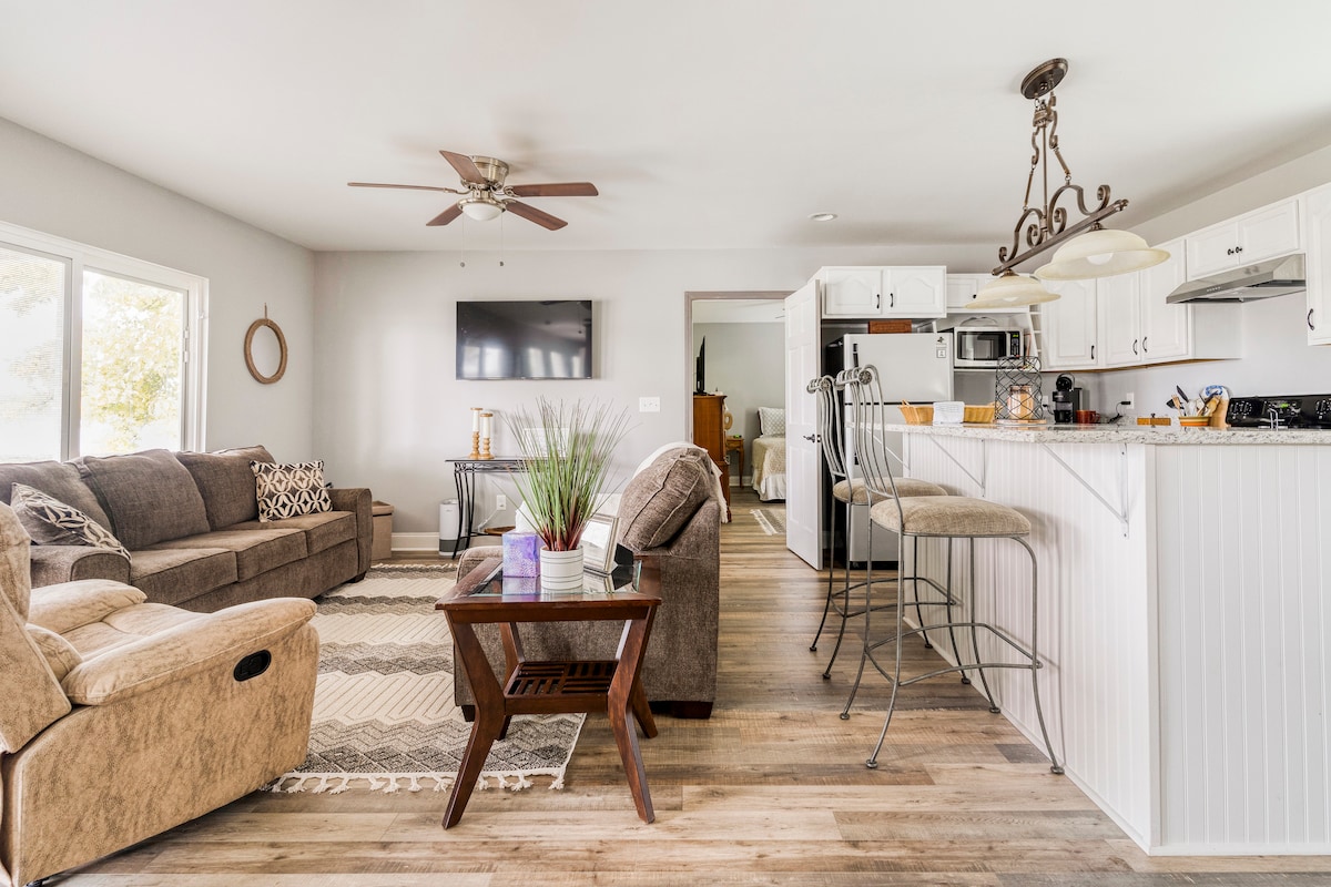 Waxhaw est une petite ville riche en patrimoine et animée d'activités, de parcs, de boutiques uniques, de restaurants raffinés, de brasseries et de cuisine locale dans une atmosphère relaxante. Notre ville offre un sentiment de bien-être à tous ceux qui y travaillent, y vivent et la visitent ! Jud's Place est à seulement 10 minutes du centre-ville et est un endroit paisible et calme pour s'évader de l'agitation de la vie. Profitez d'un appartement confortable et d'un porche spacieux entouré d'arbres avec une allée sinueuse où vous pourrez faire de longues promenades. Venez rester un moment !