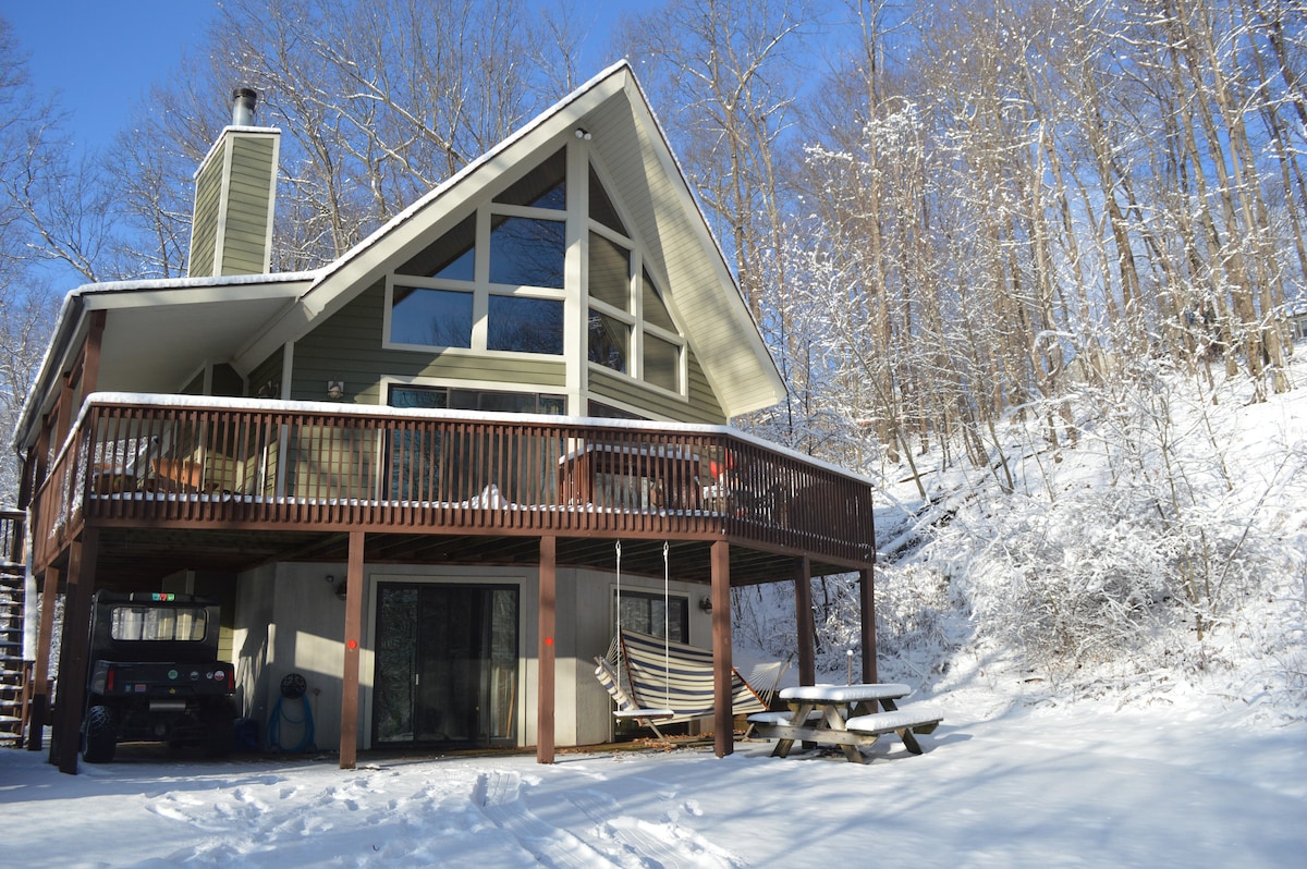 Bienvenue au « Sunset Mountain Chalet » ! C'est tout simplement génial ! La sérénité incarnée. Chalet de montagne absolument magnifique avec une vue paisible à 360 degrés. Vous avez l'impression d'être tout seul au sommet d'une montagne, mais vous êtes à 5 minutes de Wisp Resort et de Deep Creek Lake ! Nous vous mettons au défi de trouver une vue sur le coucher du soleil plus paisible que depuis la terrasse de notre chalet. Profitez du jacuzzi, de l'espace accueillant à l'intérieur ou autour des 3 acres. S'il y a de la neige, invitez tous vos amis et vos enfants pour faire de la luge !