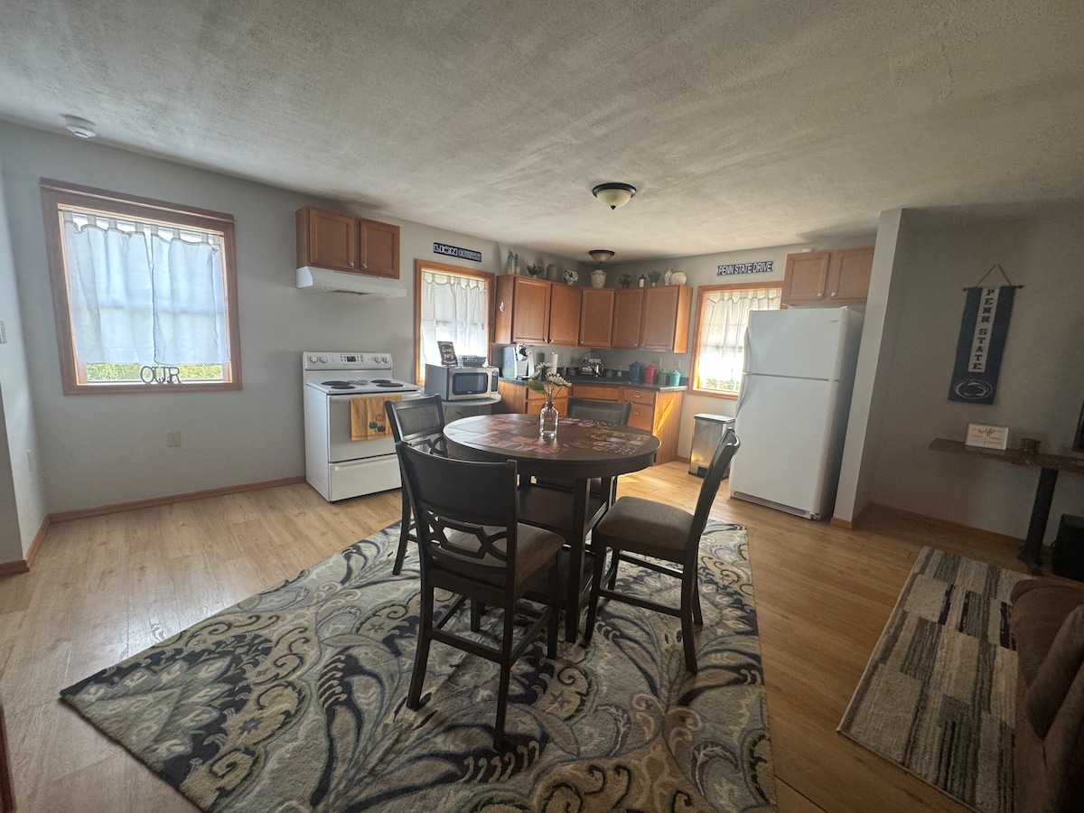 Rated by AIRBNB as 2021 most hospitable Host in Pa! Parking and private entrance with keypad. Kitchen with fridge, stove, Keurig, toaster oven, cookware, dishes/utensils. Gas grill & outdoor seating on patio. Washer and dryer in unit. Fast WiFi. Electric fireplace in family room. Close to shopping, restaurants, Altoona Hospital, Penn State Altoona, Bland Park, Horseshoe Curve, Canoe Creek, 40 minutes to Penn State University Park, 30 minutes to Blue Knob Ski Resort. 2 miles to I 99 and US 22.