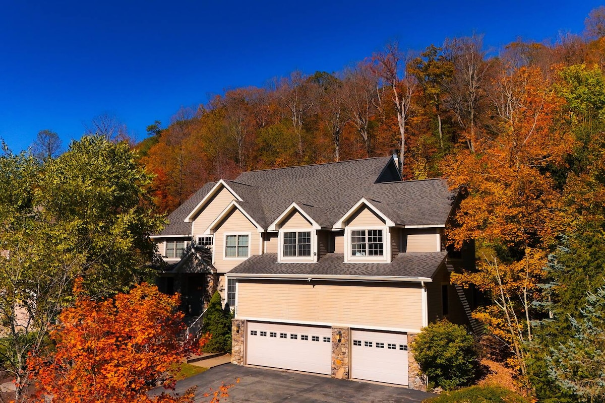 Magnifique chalet de montagne de 3 lits, 3 salles de bain et 3 étages à seulement 4 miles de Seven Springs Resort, randonnée, vélo et plus encore. Avec sauna, station de recharge pour véhicule électrique, cheminée, four double, lave-vaisselle et machine à glaçons. Bar avec granit. Terrasse, foyer au gaz, fléchettes électroniques et belle table de ping-pong. Vaste sélection de films. Vous devez avoir 25 ans pour réserver, un départ tardif ou une arrivée anticipée ou les deux si disponible peut être fait pour un frais de 65 $ ou les deux pour seulement 130 $ demandez au moment de la réservation. CAFÉ GRATUIT.