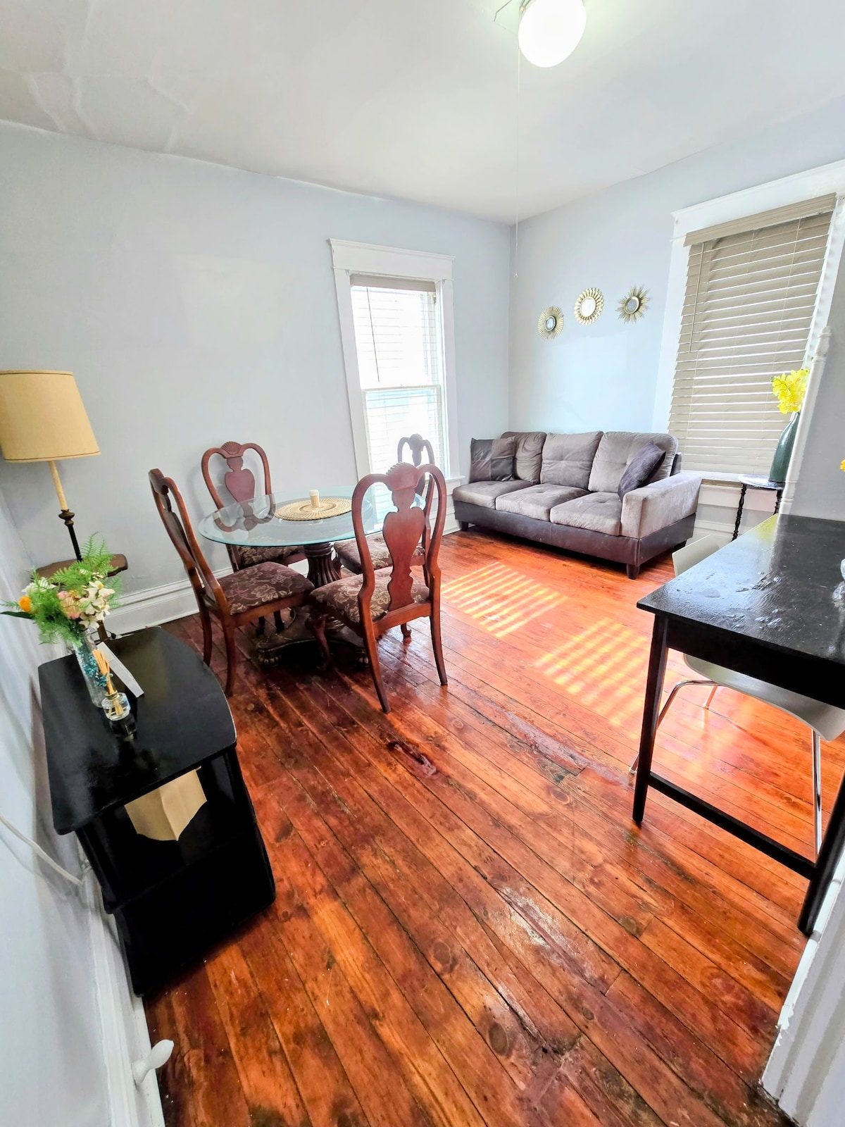 Amish Paradise a un concept de plan ouvert avec le salon, la salle à manger et la cuisine au premier étage. Il y a 3 chambres au deuxième étage. En montant les escaliers, nous avons une vue latérale donnant sur une fenêtre voûtée dans les bois. Cependant, notre partie préférée de cette maison est la vue depuis la terrasse enveloppante !! Elle offre une vue imprenable sur notre propriété et au-delà, jusqu'au parc Marti ! Ai-je mentionné que cette maison était autrefois une véritable maison amish ?😉