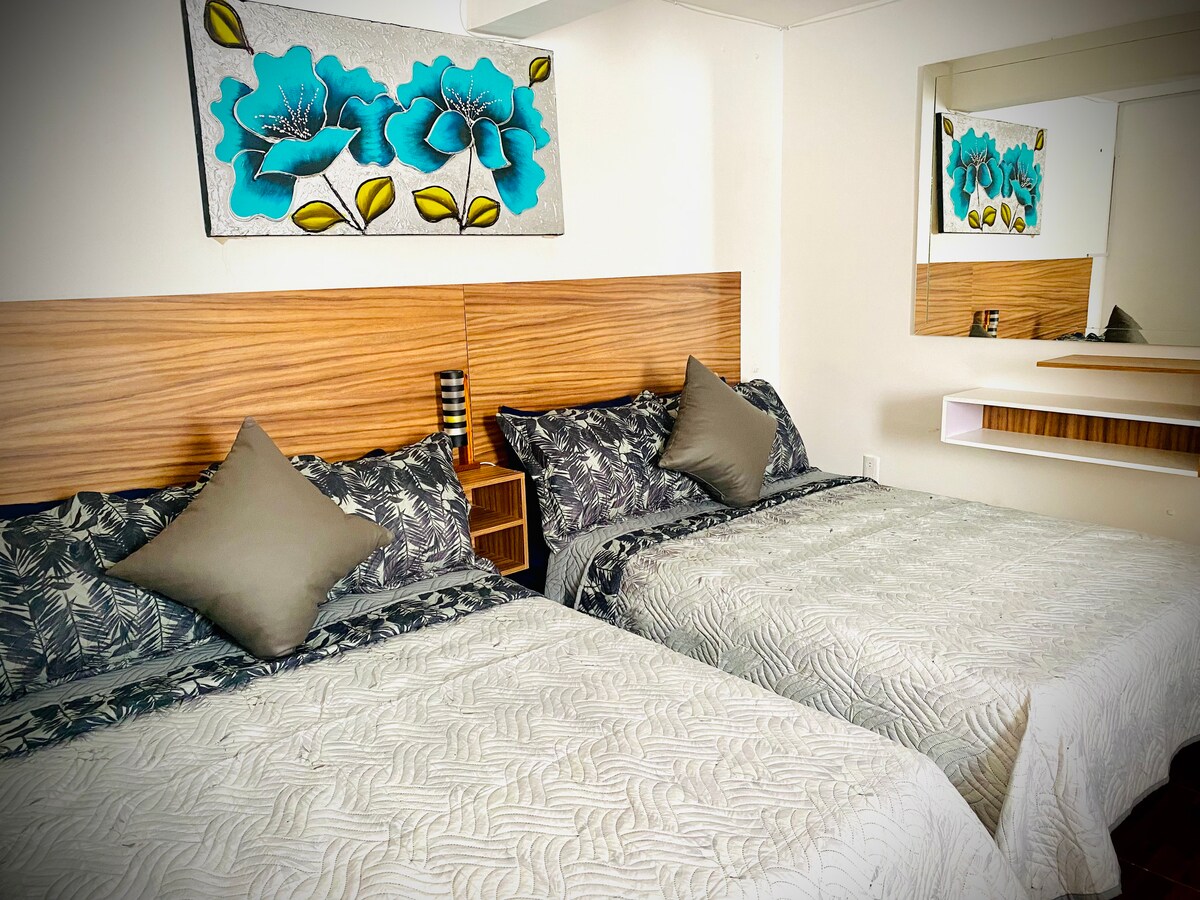 Notre designer s'est inspiré et a préparé pour vous un endroit avec un style et une ambiance exceptionnels, moderne, propre et pratique, qui fera de votre séjour un moment agréable. Emplacement privilégié, 5 min Poliforum, stade, centre et plus 2 lits doubles et 1 canapé-lit, A/C salle à manger, kitchenette, lave-linge et salle de bain complète, vous aurez ce dont vous avez besoin en un seul endroit Cuisine avec plaque à induction, grille-pain, micro-ondes, réfrigérateur et cafetière gourmet Gel douche, shampoing, eau purifiée disponibles