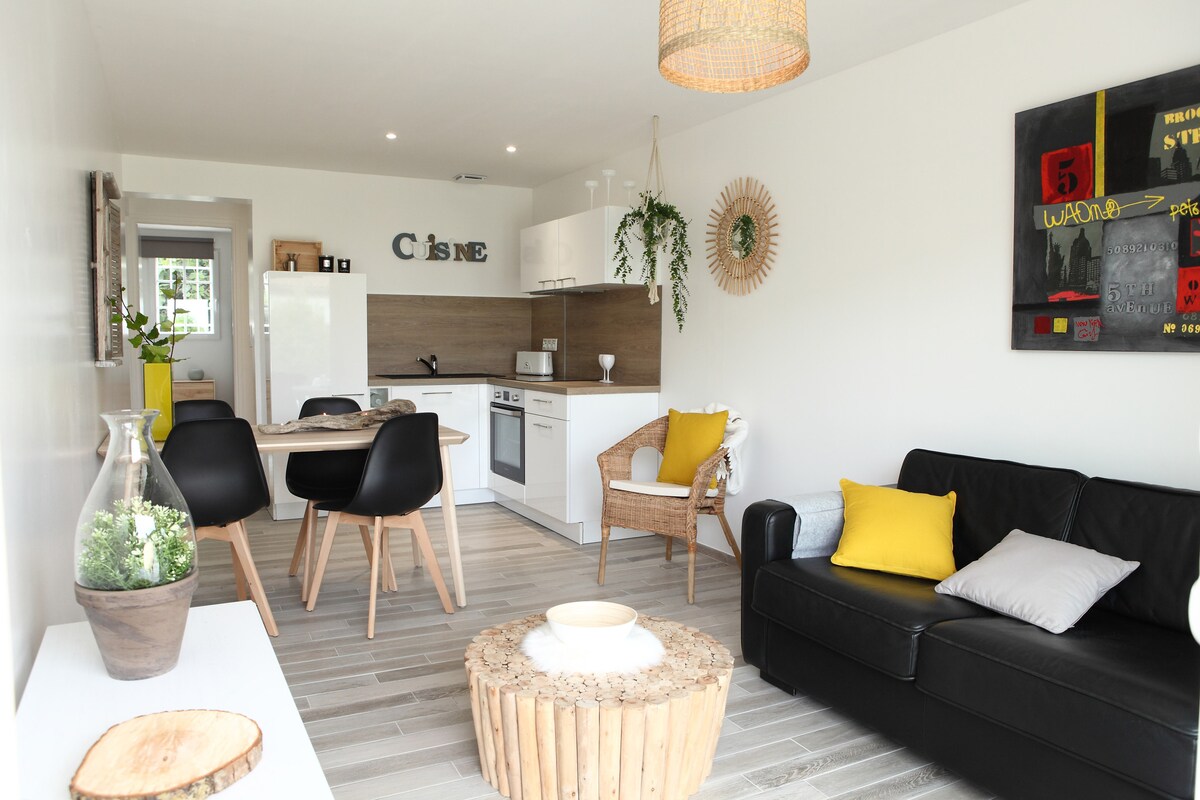 [⭐️ Logement étoilé ⭐️] Appartement lumineux et fraichement rénové avec des matériaux et du mobilier de qualité. Proche de la mer, de la base nature, de la gare SNCF et du centre ville, son emplacement dans un quartier calme et résidentiel vous séduira. Jardin aux notes exotiques, pergola à lames orientables, possibilité de stationner votre voiture dans le jardin ou encore faire bronzette au soleil. Draps et serviettes inclus sans supplément, papier WC et café d'avance.