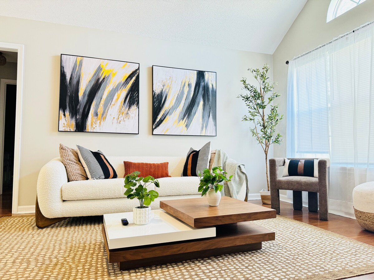 Bienvenue dans votre retraite de Decatur, une maison moderne et familiale conçue pour le confort, la connexion et un peu de plaisir ! Avec 3 chambres, 2 salles de bain complètes et un espace pouvant accueillir jusqu'à 6 personnes, cette maison lumineuse et ouverte allie la chaleur du sud à des touches élégantes. Situé à quelques minutes de Point Mallard Park, Delano Park et des meilleurs restaurants de Decatur, c'est le point de départ idéal pour des voyages en famille, des escapades de week-end ou des séjours professionnels.
