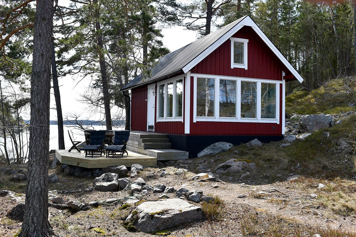 Bienvenue dans ce chalet de deux chambres + salle de bain faisant face à une vue imprenable sur l'archipel de Stockholm, et avec une jetée privée pour nager et se détendre. Des VTT/vélos, des kayaks, un sauna et un jacuzzi sont à la disposition des voyageurs. Convient aux couples ou à la petite famille pour profiter d'un séjour de détente au port de Stockholm, avec la nature à votre porte. Coin salon privé à l'extérieur du chalet, avec cuisine extérieure entièrement équipée, barbecue et vue sur l'océan.