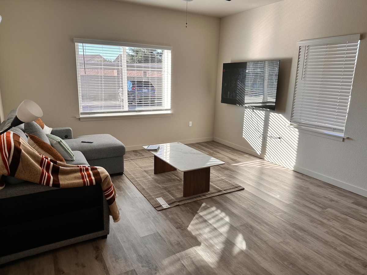 Profitez d'un séjour dans notre nouvel appartement de 2 chambres dans la vallée centrale. Situé à 3 km de Kaiser et à 1 mile de l'AUTOROUTE 99. Très proche de l'hôpital médical et du centre médical commémoratif. C'est l'emplacement idéal pour les professionnels de santé en déplacement et les professionnels qui ont besoin d'un accès rapide à l'autoroute. L'appartement est situé à Salida Ca, qui se trouve à quelques minutes de Modesto Ca. À proximité, vous trouverez des magasins, des restaurants et une variété de camions-restaurants.