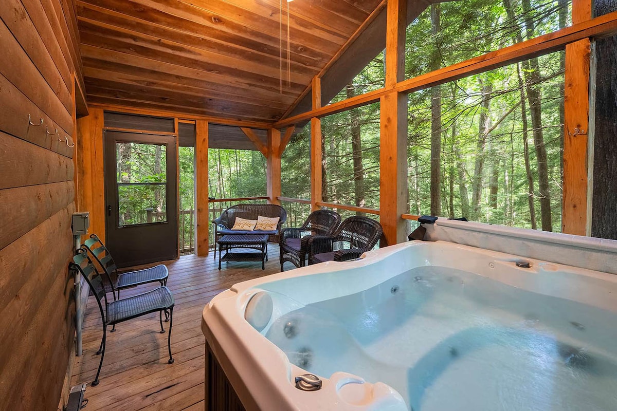 Profitez de la brise de la montagne dans ce chalet rustique et confortable en forme de A. Faites de la randonnée dans les bois, installez-vous confortablement près d'un feu extérieur ou détendez-vous simplement sur le porche et écoutez les sons de la nature. Le chalet est idéalement situé à 1,6 km du lac Summersville (zone de loisirs de Battle Run), à 35 km du parc national de New River Gorge et à 6,4 km de la mise à l'eau pour le rafting et le kayak sur la rivière Upper Gauley.