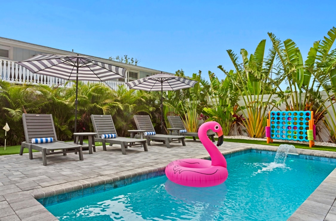 NOUVEAU 4 lits 3 salles de bain, piscine chauffée, voiturette de golf, près de la plage