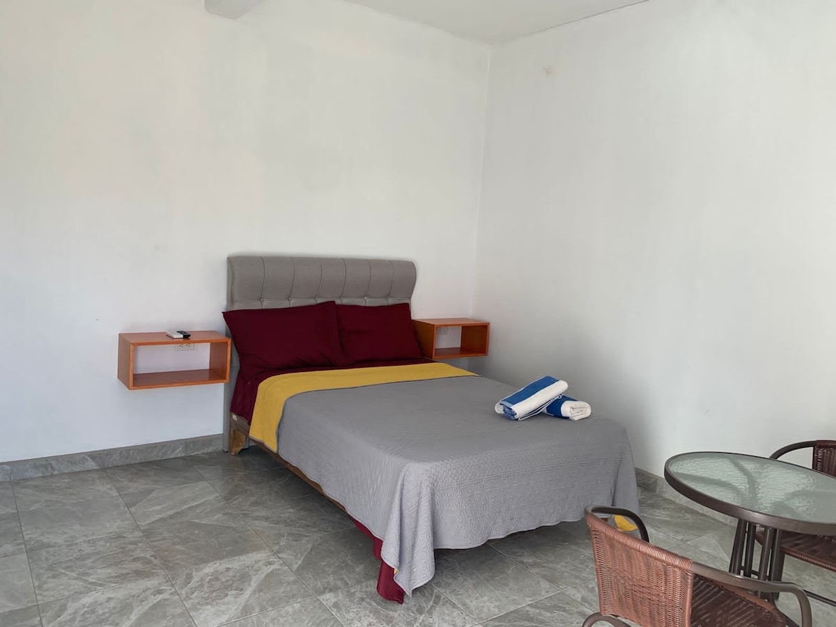Bienvenue dans votre maison loin de chez vous ! À deux rues du front de mer et à cinq rues du centre. Il dispose d'une petite salle équipée d'une télévision. La cuisine a tout le nécessaire. La chambre offre deux lits Queen confortables, un grand placard et une élégante coiffeuse. La salle de bains est équipée d'eau chaude et froide pour votre confort. Tout l'espace est climatisé avec de nouveaux climatiseurs, à la fois dans le salon et dans la chambre. Nous disposons d'un parking privé. Wifi.