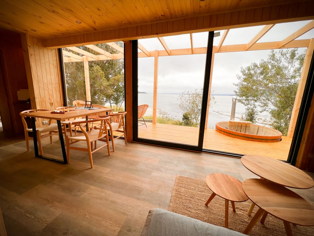 Inclus dans le "11 des meilleurs Airbnbs au Chili" par The Culture Trip. La cabane, de 55m2, est sur la péninsule du Rilán, à 35 minutes de Castro et l'aéroport. Il est un ancien entrepôt restauré avec du bois natif, avec une vue magnifique sur la baie de Castro, une hot tub pour quatre personnes et du accès direct à la plage. Il est un endroit parfait comme un point de départ pour explorer l'île par terre ou par mer. Vous pouvez aller à Castro en bateau, sur un voyage de 10 minutes.