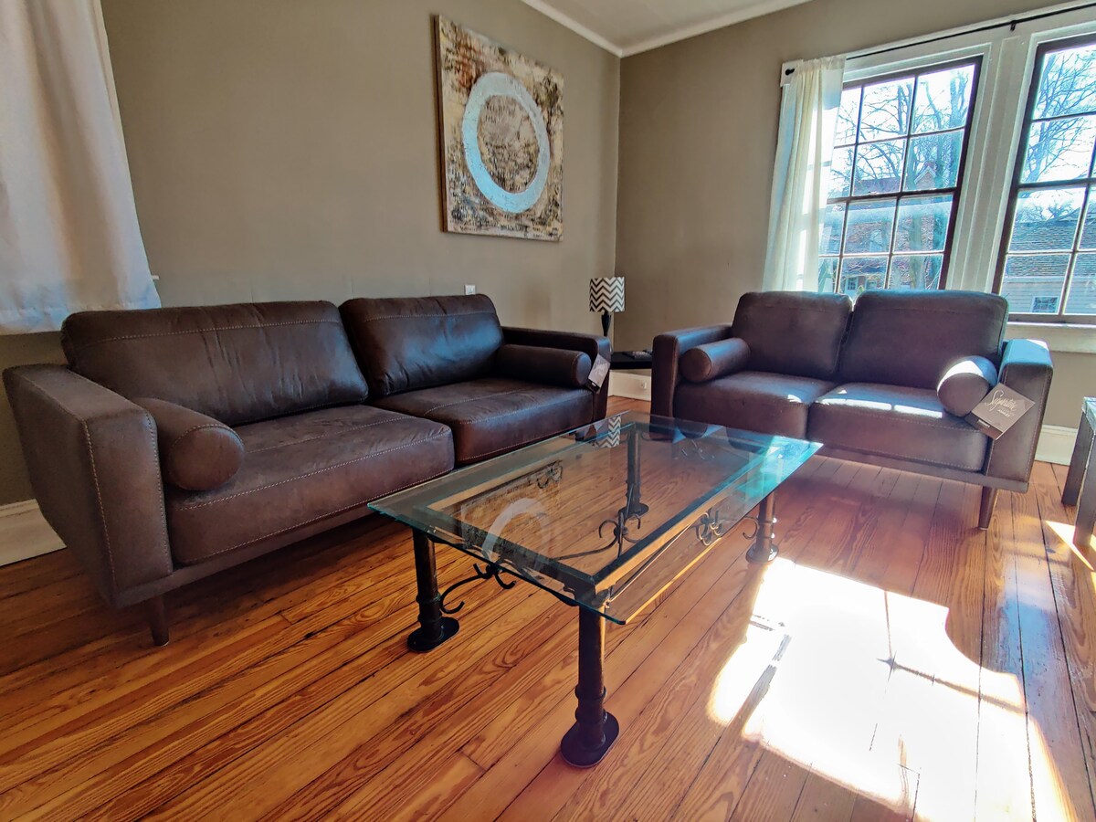 Cet appartement d'une chambre conçu par des professionnels dans le centre-ville de Charles Town est à distance de marche des cafés, des restaurants et des monuments, et également à proximité de tout ce qu'il y a à faire dans l'historique Harpers Ferry, Virginia Wine Country et le rafting de la rivière Shenandoah. Il s'agit d'un appartement complet d'une chambre avec un canapé-lit supplémentaire. Cet appartement au 3e étage avec parquet, cuisine entièrement équipée, ouvert sur le salon avec canapé gigogne et télévision (avec Roku). Également, un petit bureau séparé.