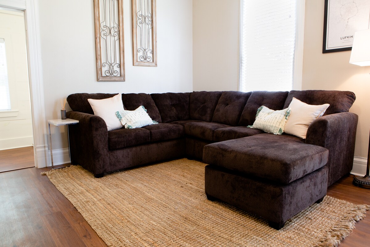 Bienvenue dans votre maison loin de chez vous ! 🌲 Ce magnifique duplex récemment construit est à seulement 3 pâtés de maisons de l'hôpital CHI St. Luke et à environ 1/2 mile du centre-ville de Lufkin. La maison est ouverte et dispose de deux chambres confortables, d'une petite cuisine élégante et d'une salle de bain moderne, parfaite pour les infirmières en voyage, les visiteurs d'hôpitaux, une petite famille, les couples ou les voyageurs en solo. Niché au cœur de Lufkin, vous profiterez d'un accès facile aux attractions locales, aux restaurants et aux activités de plein air.
