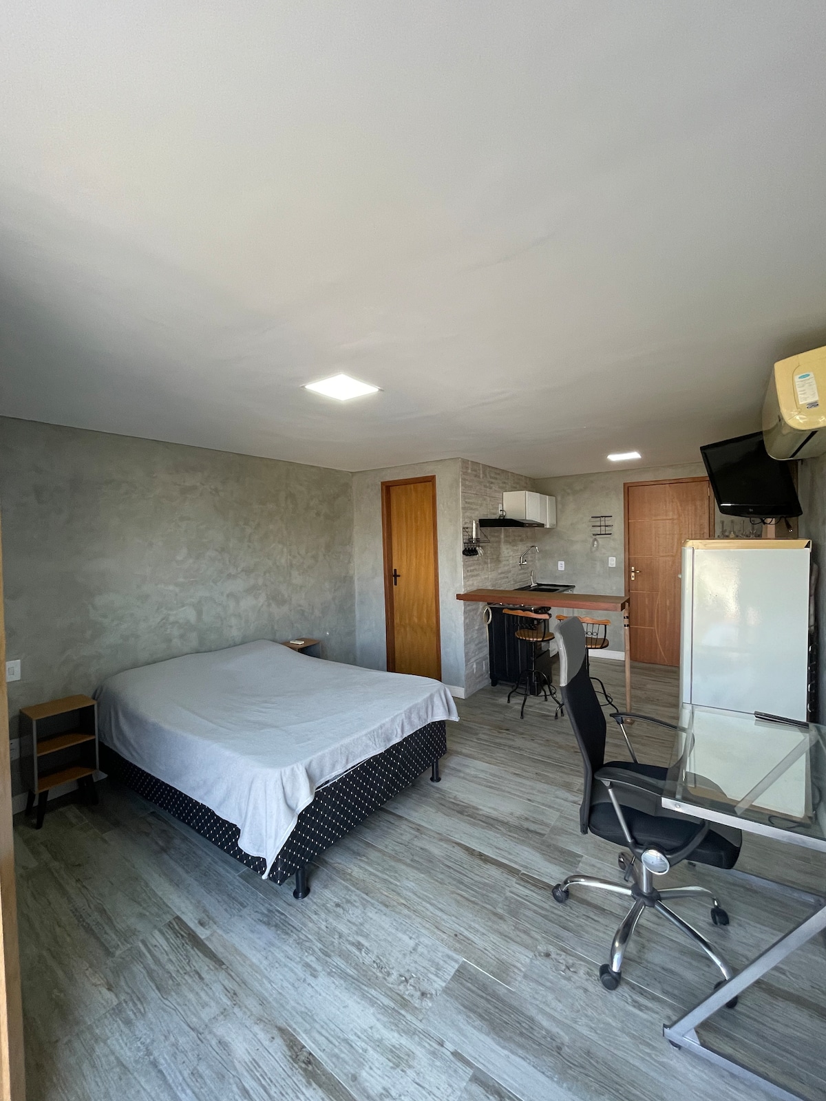 Studio moderne et super confortable, situé face à Praia do Pecado, à Macaé. Avec lit confortable, climatisation, télévision, minibar, mini cuisine équipée, salle de bain spacieuse et espace de travail. Le bâtiment dispose d'une piscine, d'un restaurant et d'un grand confort. Idéal pour ceux qui recherchent la praticité, le repos et une vue incroyable sur la mer. Villa parfaite pour les couples, les voyageurs ou toute personne qui vient travailler et qui veut se détendre avec style.
