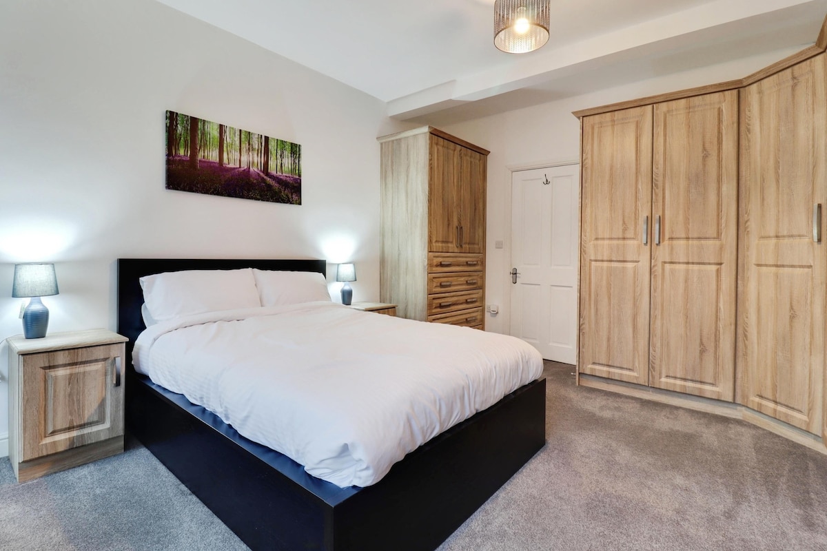 Profitez d'une suite spacieuse parfaite pour les affaires ou les loisirs avec sa propre porte d'accès privée, son escalier et sa place de parking. Un espace élégant avec kitchenette, belle salle de bain attenante et espace pour se détendre. Entièrement équipé avec tout ce dont vous pourriez avoir besoin pour rendre votre séjour confortable. Idéal pour un accès facile à Newcastle et à proximité de la M6/A34, de l'hôpital et des universités locales. Il y a une gamme d'excellents pubs/restaurants à proximité et Trentham Gardens se trouve à quelques kilomètres.