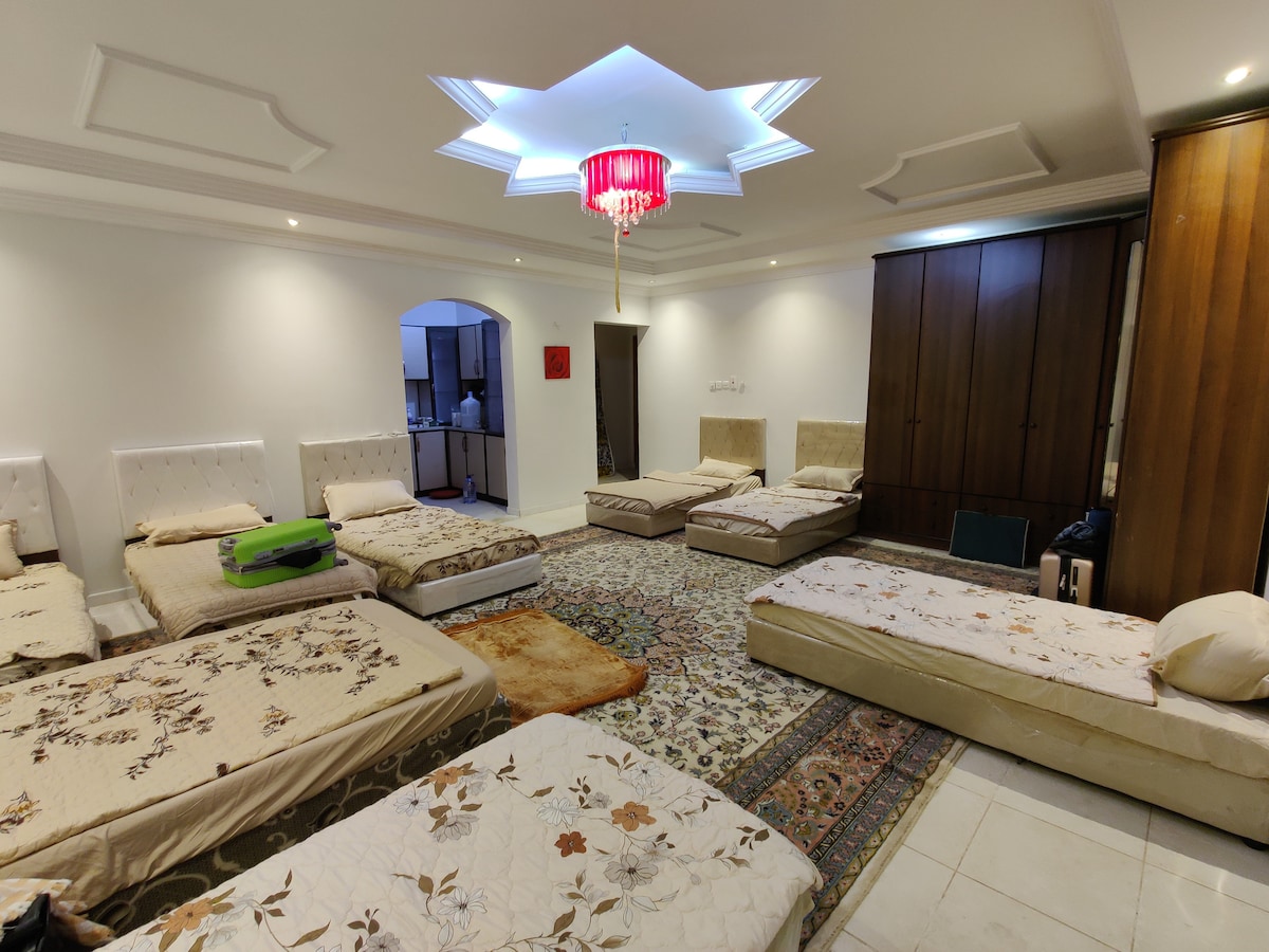 Profitez d'un séjour calme et heureux dans cet appartement équipé de meubles neufs, propres et luxueux en bois allemand, ainsi que d'appareils modernes et très intéressés par la propreté et la stérilisation Avantages de l'emplacement À 4 minutes en voiture de la mosquée Quba et à 9 minutes de la mosquée du Prophète et à 3 minutes à pied de l'arrêt de bus menant à la mosquée du Prophète