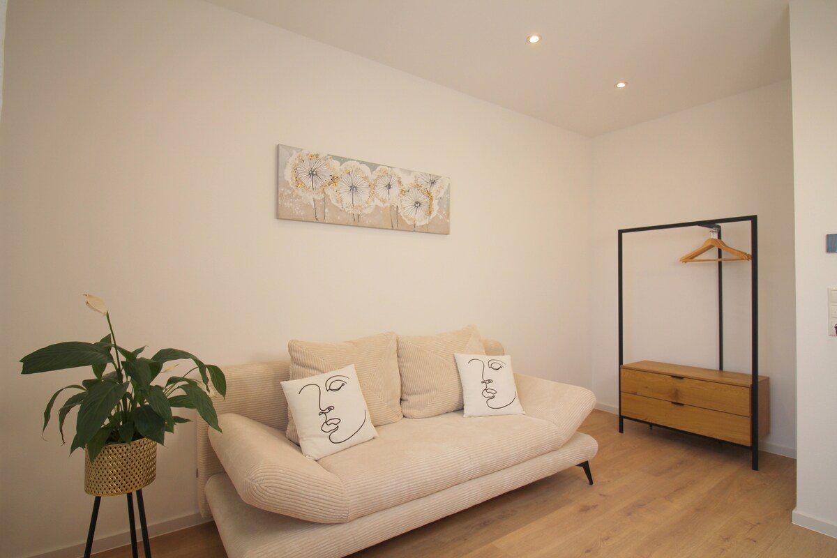 Détendez-vous avec toute la famille dans ce logement paisible. EXTRAS /cadeau de bienvenue gratuit par réservation : 1x 0,5 l d'eau 1x 0,5 l de bière (principalement de la région) Divers : Appartement non fumeur (possibilité pour les fumeurs uniquement à l'extérieur de l'appartement, par exemple terrasse, cour,...) Différents sentiers de randonnée à 3 minutes (à pied), piste cyclable à 2 minutes ; Quartier résidentiel calme ; Proximité de la lisière de la forêt ; Aire de jeux pour les enfants à env. 150 m.