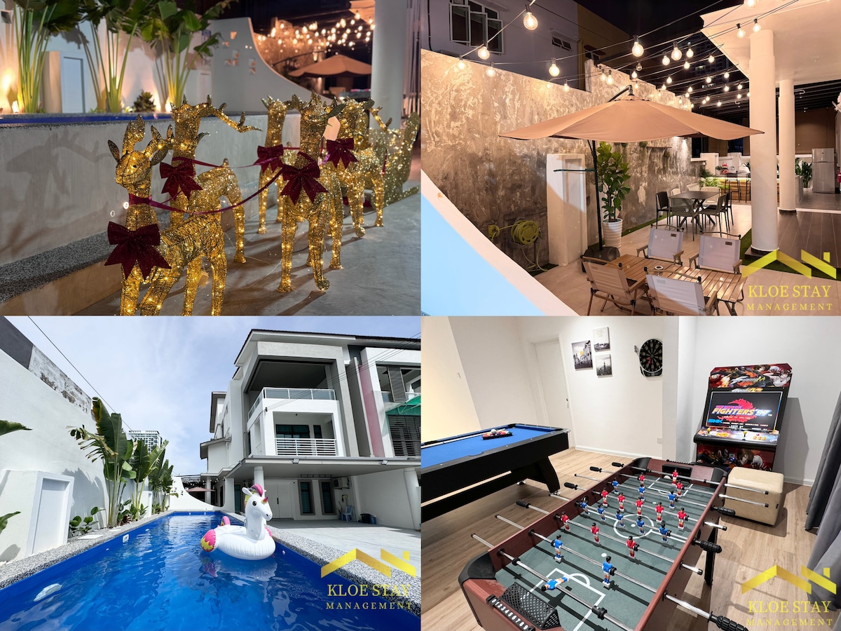 Bienvenue dans notre luxueuse villa nichée au cœur de la ville de Melaka ! À seulement quelques minutes de Jonker Street, notre vaste maison offre une retraite somptueuse pour votre escapade. Bénéficiant d'une grande piscine lacustre et d'un grand salon, notre villa dispose de 5 chambres élégamment aménagées et de 6 salles de bains, pouvant accueillir confortablement plus de 20 personnes, ce qui en fait un choix idéal pour les grands rassemblements ou les vacances en famille mémorables. Offrez-vous un royaume de divertissement avec piscine privée, mah jong, jeux de société, barbecue et plus encore.