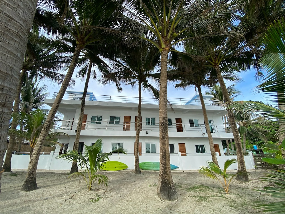 Découvrez le bonheur en bord de mer : votre escapade parfaite vous attend ! Profitez de la vue imprenable sur l'océan depuis votre balcon. Doté d'équipements de luxe et d'un emplacement pratique en bord de mer, il est situé au cœur de Bulabog Beach. Bien que vous puissiez manger un morceau dans de nombreux endroits sur le nouveau sentier en bord de mer de Bulabog, nous sommes également idéalement situés à 10 minutes à pied des cafés et bars animés menant au centre commercial D Mall à White Beach. C'est aussi la meilleure plage de kitesurf du coin !