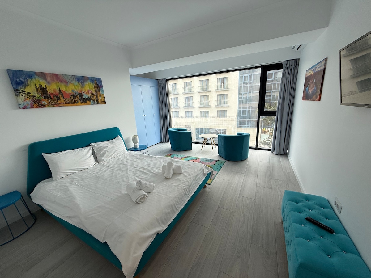Si vous voulez la tranquillité et la détente, nous vous attendons à la mer 🌴 🌊Blue Sea Studio est parfait pour un séjour frais, l'appartement est nouvellement meublé, situé dans la zone du campus, près de Constanta Tavern, 20 minutes à pied de la plage Arruba Beach Mamaia plage, (la plage n'a pas été agrandie), 15 minutes à pied du village de vacances. L'appartement dispose d'un lit double, d'un fauteuil extensible, d'une cuisine entièrement meublée, de la climatisation, d'un ACCÈS WIFI GRATUIT, d'une Smart TV, etc.