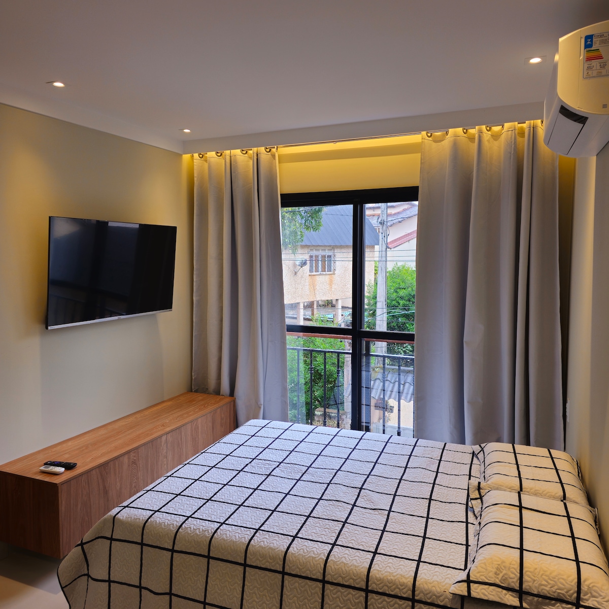 Bienvenue à Hospedagem Stein ! Nos appartements ont le meilleur emplacement de la ville pour ceux qui veulent rester dans le centre de Domingos Martins, et peuvent connaître tout le centre-ville à pied. L'appartement est au cinquième étage, dispose d'une chambre avec climatisation, salle de bains, salon, cuisine équipée. Il n'y a pas de place de parking. Il dispose d'une connexion INTERNET de 100 Mo et de la télévision par câble. Nous fournissons le linge de lit et les serviettes.