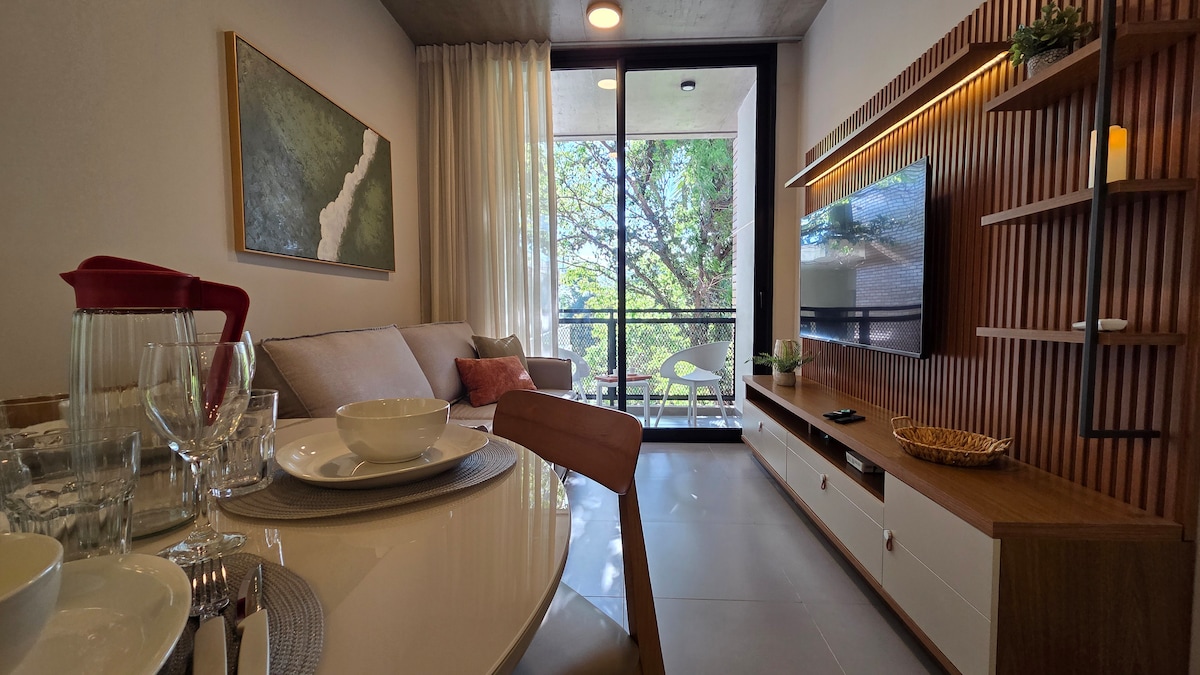 Appartement moderne en copropriété privée – sécurité 24 h/24 et confort total. Idéal jusqu'à 4 personnes. Deux chambres : une principale avec un lit double et une salle de bains privative, et une autre avec deux lits simples. Deuxième salle de bain complète. Salon-salle à manger avec télévision, cuisine américaine équipée, climatisation dans toutes les pièces, Wifi, linge de lit, serviettes, ustensiles de cuisine et terrasse avec barbecue. Fonctionnel, chaleureux et confortable pour profiter en famille ou entre amis. Votre maison parfaite loin de chez vous !