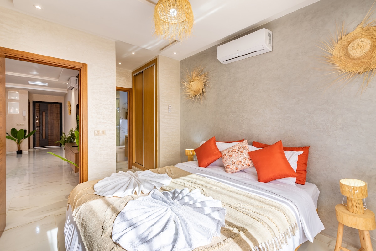 Séjournez en plein cœur de Marrakech dans notre appartement 2 chambres et 2 salles de bain. Profitez d'Une literie Simmons haut de gamme, WiFi haut débit (fibre optique) et d'une décoration moderne avec un bassin privé. Cuisine entièrement équipée, baignoire élégante, et douche italienne. À quelques pas de la place Jemaa el-Fna, du Plazza, et du Carré Eden. La piscine n’est pas chauffée. NB: Les couples marocains non mariés ne sont pas autorisés.