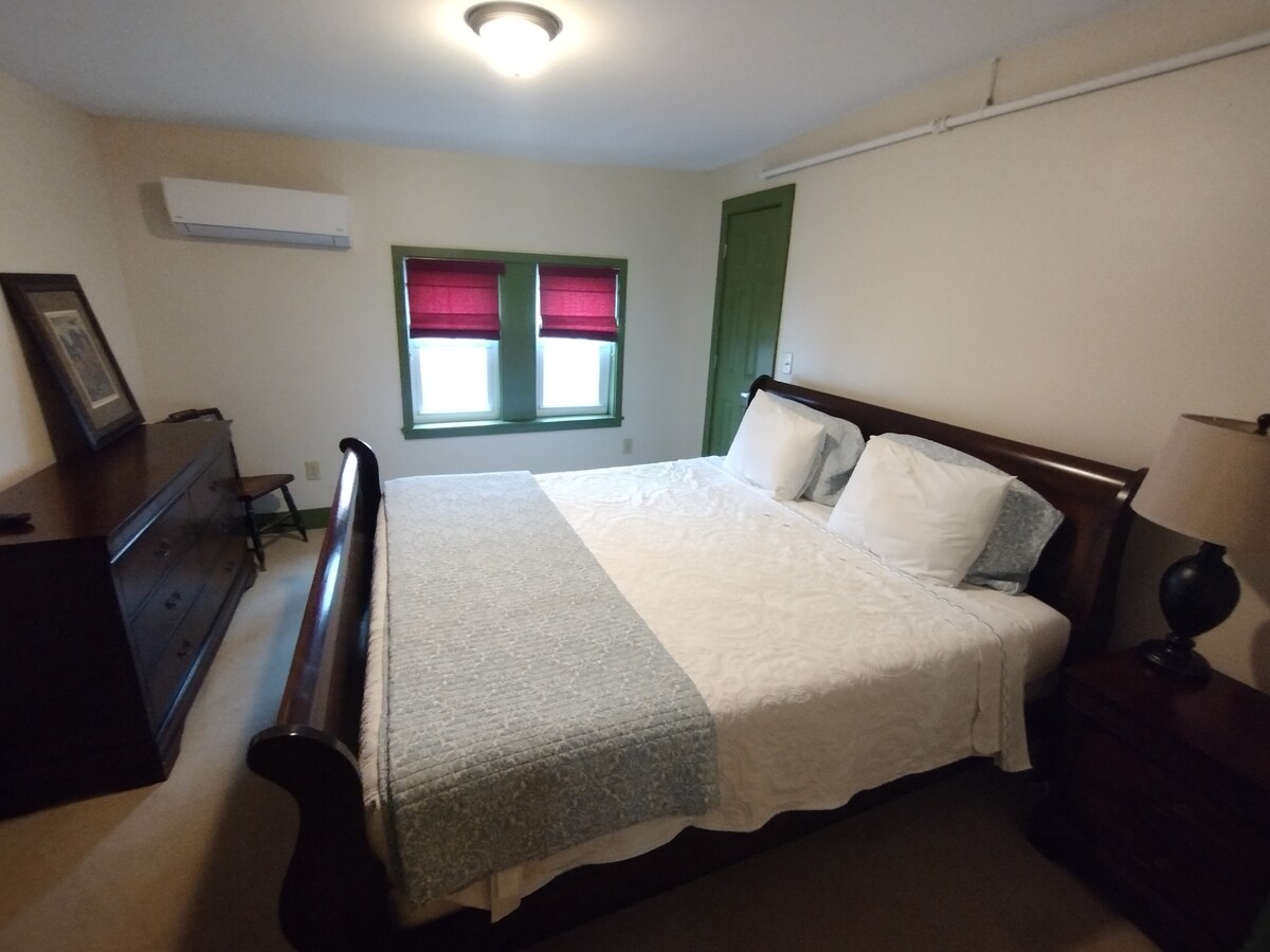 Located on the inn's south side, Room 9 offers generous space with a large wardrobe closet, queen-sized bed, and a bathroom set up featuring a step-in tub and shower. Natural light floods the room through its windows, offering a splendid in-room view. Guests staying Monday-Friday are served breakfast at Sugar Water Restaurant from 7-11AM, with a delightful brunch available on Saturdays (10AM-4PM) and Sundays (10AM-2PM). One entree per guest, juice and coffee or tea are included in your stay.