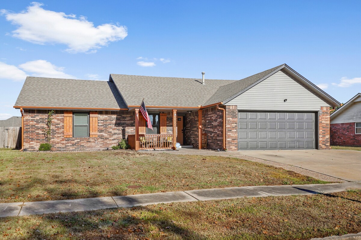 Venez profiter de votre séjour avec un accès facile à tout ce qui se trouve dans la région de Pryor. Cette maison située au centre est à 5 min de tout, y compris Walmart, le parc industriel, le centre de loisirs (avec piscine), de nombreux restaurants de restauration rapide et un parc avec aire de jeux aquatiques ! Elle est également à seulement 10 minutes du lac Hudson et de Rocklahoma. La maison dispose d'une connexion Wi-Fi 5G et d'une télévision configurée avec Hulu, Disney+ et ESPN+. Il y a un parking couvert pour votre véhicule et un patio arrière couvert pour vous asseoir dehors et profiter de votre tasse de café du matin.