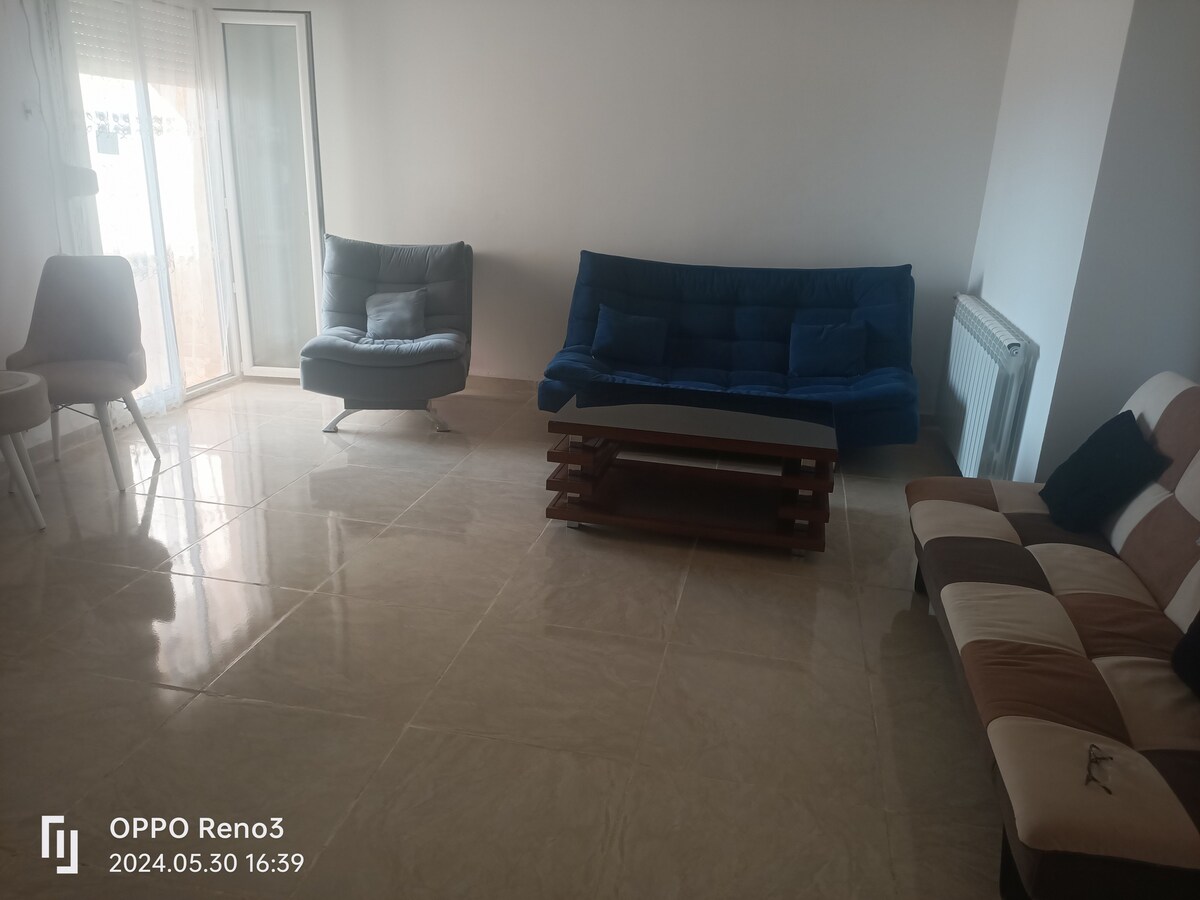 Un très bon appartement qui se trouve a l'entrée de mostaganem dans un très bon cartier ,vue sur la route a côté de toute commodité, très bon voisinage et sur tout très calme pour bien reposé et passé des bon vacances.