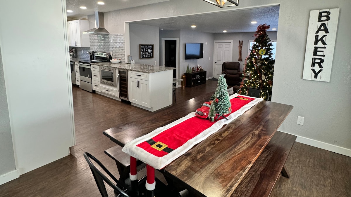 Profitez de cette belle maison de 4 chambres, 3 salles de bain, une salle de jeux et un bureau nichée dans les montagnes de Donnelly. Détendez-vous à l'intérieur ou profitez d'activités de plein air toute l'année. Situé dans une rue calme sans issue. Vue imprenable sur la montagne, à 10 minutes de Tamarack Resort. À 5 minutes du lac, de la plage, des parcs d'État à pied, à vélo. Brasero Mobilier de patio et jeux Jacuzzi 6 personnes Salle de jeux à l'étage... piscine, vidéos, télévision, baby-foot Grand garage - Stationnement dans l'allée Chambre loft, salle de bain Stationnement dans le garage et l'allée