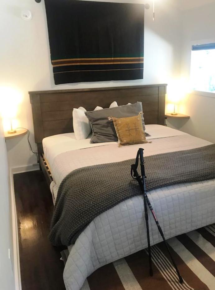 Notre « cabane en pleine forêt » offre une expérience de glamping exceptionnelle ! Cette petite maison dispose de toilettes à compost intérieures, d'une douche extérieure avec eau chaude, d'un jacuzzi, d'un réfrigérateur, d'un climatiseur, d'un micro-ondes, d'une cafetière, d'un matelas queen size et de votre propre foyer privé avec bois de chauffage inclus. Les serviettes sont incluses. Veuillez apporter votre propre literie ; la housse de matelas est fournie. Nous sommes à 5 minutes du River Ranch Resort où vous pourrez louer des radeaux ou des kayaks pour flotter sur la magnifique rivière Elk.