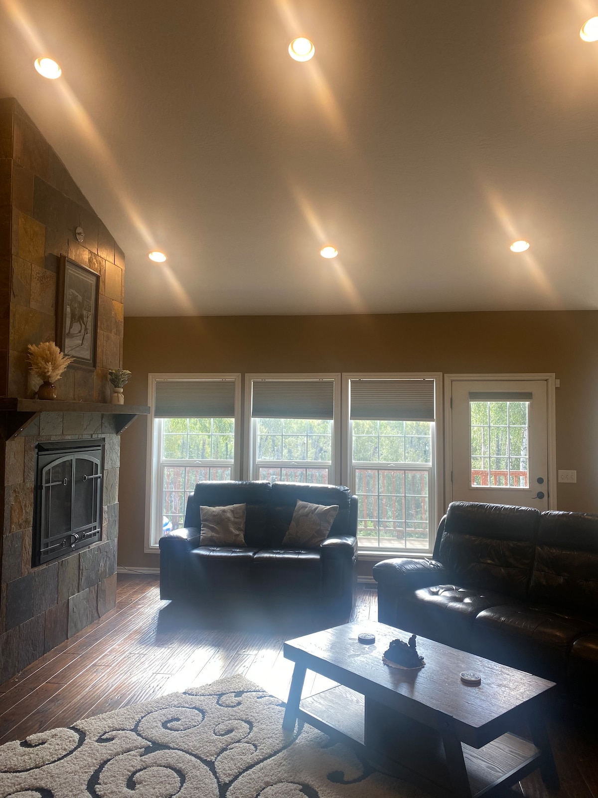 Évadez-vous dans une belle retraite en Alaska nichée sur une falaise surplombant les majestueuses montagnes Talkeetna. Cette propriété de 2 acres dispose d'une grande terrasse avec un jacuzzi pour 4 personnes et un foyer, parfait pour se détendre en fin de journée. Il y a deux chambres confortables, chacune équipée de sa propre télévision, et une salle de bain de type spa pour la détente. Il y a un lave-linge et un sèche-linge, donc vous aurez tout le confort d'un chez-soi. Situé à proximité de lieux de loisirs de plein air comme Hatcher Pass, cet endroit est idéal pour tout le monde.