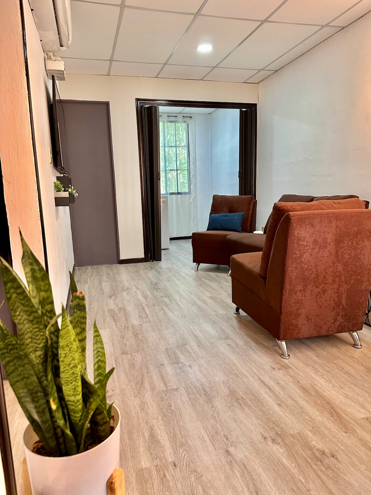 Pequeño y economico apartamento de 2 habitaciones con aires acondicionados de ventana, cama matrimonial en los cuartos, excelente ubicacion, cerca de walmart constitucion y tiendas en gasolineras 24/7, garage para vehiculo tamaño regular, residencial privada y segura, wifi disponible, cafetera, utensilios de cocina basicos, microondas, lavadora, pequeño patio. Nos esmeramos en entregar una limpieza del espacio excelente para su comodida durante la estadia.