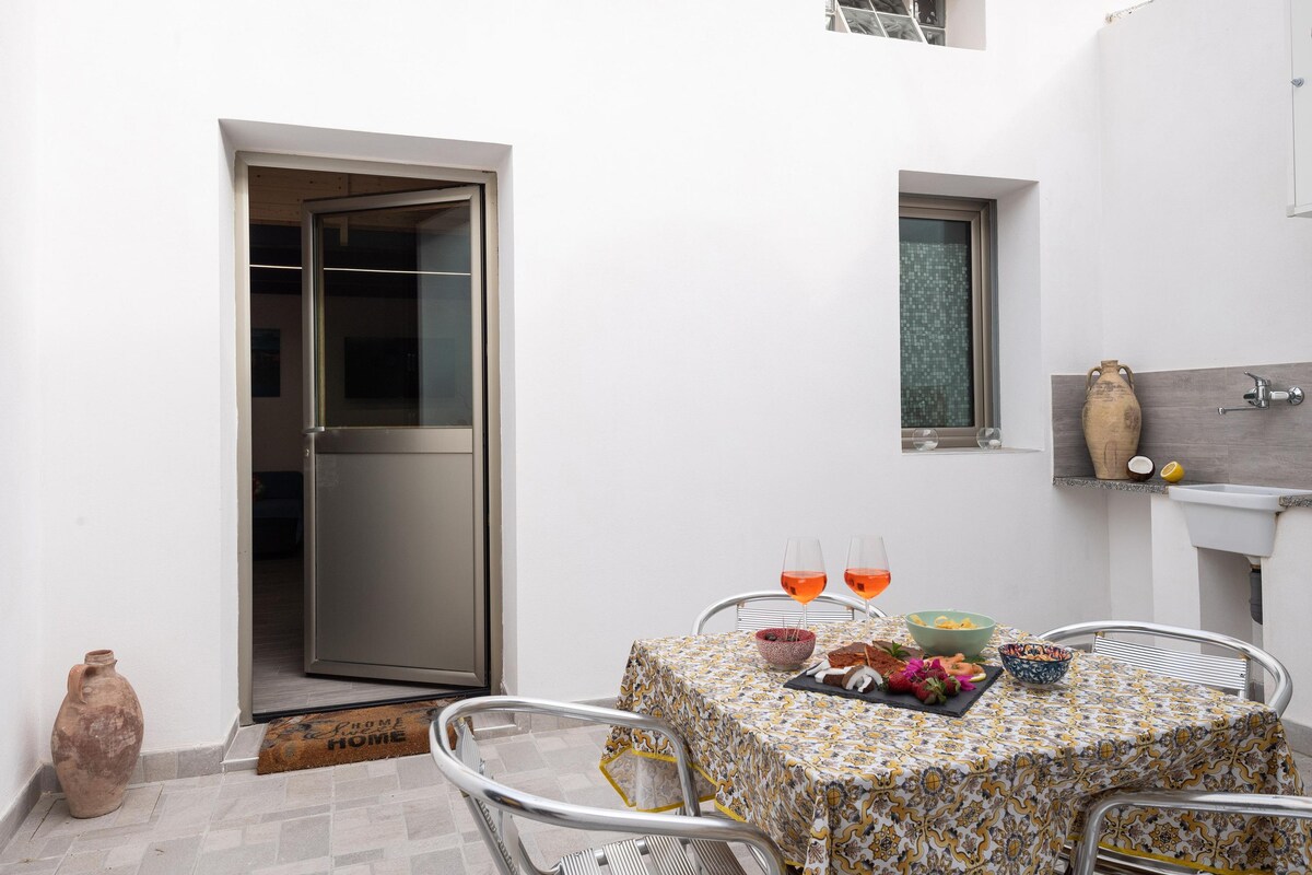 Autrefois, la maison était l’atelier d’un forgeron avec sa petite maison adjacente. Récemment rénovée dans un style contemporain, elle est devenue une résidence sur deux étages d’environ 80 m². Au rez-de-chaussée se trouve le salon avec la table à manger, la cuisine, les services et un garde-manger pour les vins, accessible par un escalier en bois à marches décalées. Un deuxième escalier en fer noir mène à la mezzanine intermédiaire où est organisé le bureau. La balustrade devient le plan de travail et donne sur la double hauteur. Au premier étage se trouvent les deux chambres avec salle de bain privative. Les sols sont en béton résiné et en partie avec des carreaux de pâte de ciment de récupération ; l’étage supérieur est fini avec du parquet. Les détails du mobilier vintage, l’éclairage des pièces et les peintures d’art contemporain d’un jeune artiste-designer sicilien. La maison est équipée de la climatisation hivernale et estivale, d'une connexion Wi-Fi, d'une télévision et d'un lave-vaisselle. À quelques kilomètres se trouve la plage de Porto Palo (Pavillon Bleu) avec la possibilité de faire des excursions en bateau, des vols en ULM et de louer des vélos. Dans les environs, à moins de 25 minutes en voiture, vous pourrez jouer au golf dans le magnifique Golf Verdura Resort. Les sites archéologiques les plus importants de la Sicile sont facilement accessibles : Sélinonte (15 minutes), Cave di Cusa (25 minutes), Ségeste (45 minutes), Eraclea Minoa (40 minutes) et Agrigente et « Scala dei Turchi » (50 minutes) À visiter : la ville de Sciacca, Sambuca di Sicilia (plus beau village d'Italie 2016), le parc littéraire de Tomasi di Lampedusa à Santa Margherita (15 minutes), le « Cretto di Burri » à Gibellina (30 minutes), le Stagnone de Marsala (Mothia), les Salines et la ville de Trapani, Erice (tous à environ 60 minutes en voiture) La ville est bien reliée aux aéroports Falcone Borsellino de Palerme et Trapani Birgi, tous deux accessibles en une heure de route.