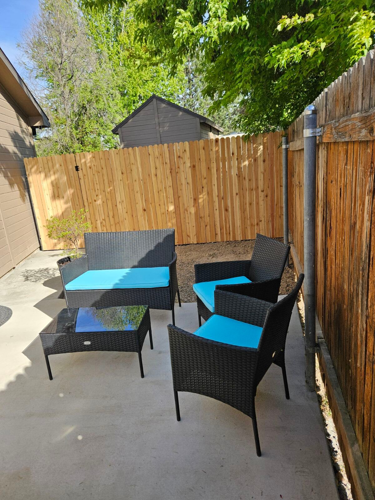 Cette charmante maison d'hôtes offre un séjour sécurisé et privé. Comprend une salle de bain complète, un lit King Size et un coin repas extérieur. Notre maison est proche de Meridian Village, de Settlers Park et de notre autoroute principale (I-84). À proximité du centre-ville de Boise, des rivières et de l'aéroport. Vous disposerez d'une place de stationnement désignée dans l'allée et d'un espace pour ranger les vélos, les kayaks, etc. Un matelas gonflable double et un lit pliant pour enfant sont disponibles sur demande. Nous n'acceptons pas les animaux de compagnie, y compris les animaux de soutien émotionnel.