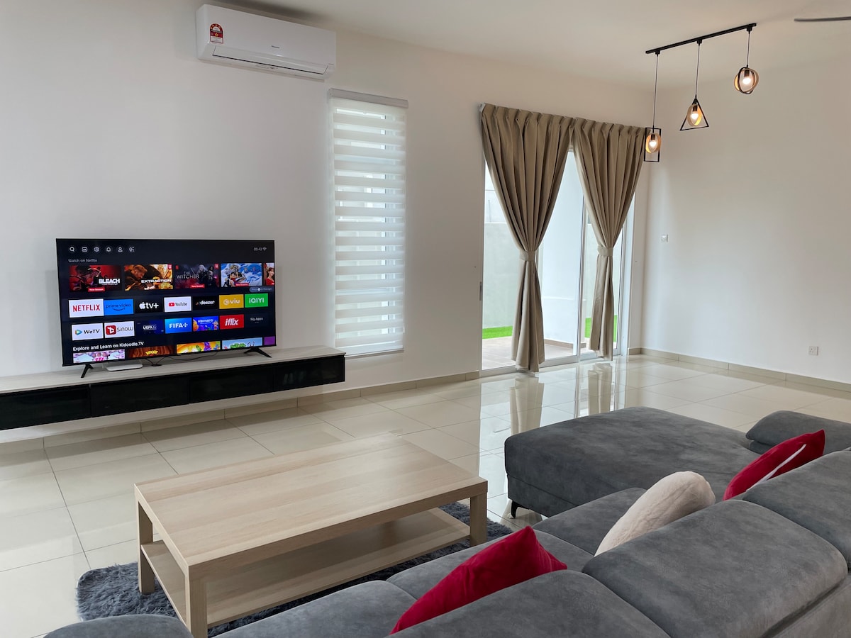 Il s'agit d'une nouvelle maison en grappe à deux étages située à Taman Kluang Perdana, dans la région de Parkland, à 20-23 minutes en voiture de UK Farm, à 20-22 minutes en voiture de Gunung Lambak et à 14-16 minutes en voiture de l'art de la rue Kluang. Notre thème est basé sur le thème minimaliste chaleureux, qui est le séjour parfait à Kluang pour les familles moyennes (max. 12pax). Il y a 4 chambres et 3 salles de bain. Toutes les chambres et le salon disposent d'une climatisation complète. Une connexion Wi-Fi par fibre optique est disponible, les voyageurs peuvent profiter d'un film ou d'une télévision dramatique depuis la boîte de télévision.