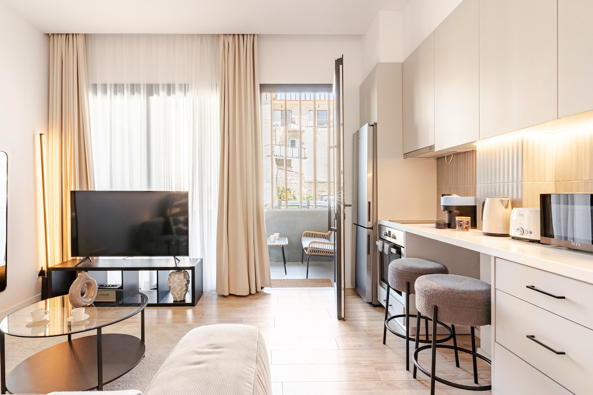 Cette résidence de luxe, lumineuse et entièrement climatisée se compose d'un salon spacieux ouvert, d'une salle à manger et d'une cuisine entièrement équipée, d'une table à manger pour 4 personnes et d'un coin salon confortable avec un satellite de télévision à écran plat 65"et une connexion Wi-Fi. Chaque chambre se compose d'un très grand lit king size avec penderie et chauffage par le sol/climatisation et un accès direct au balcon. Une télévision à écran plat de 50"et une salle de bain attenante sont incluses dans l'une des chambres.