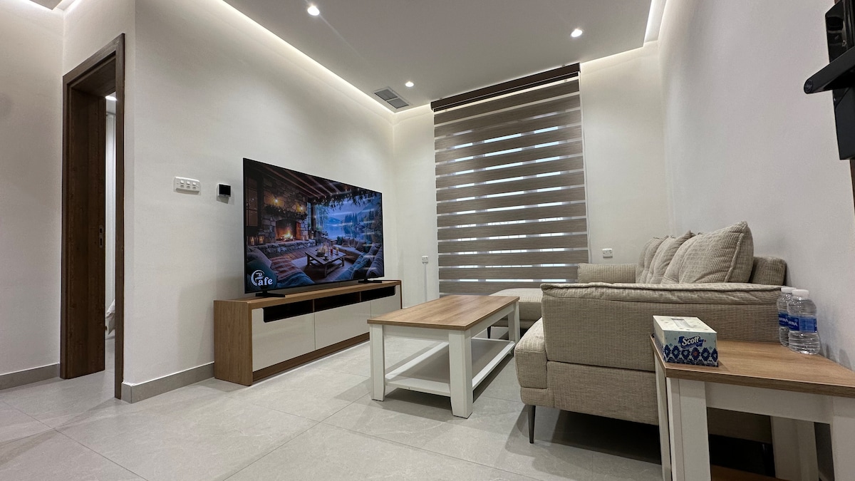 Welcome to your modern and cozy 1BR getaway in the heart of Salmiya. The apartment is designed with a clean, minimal aesthetic and a comfortable home-like feel. Enjoy ultra-fast WiFi, a premium entertainment setup, self check-in, and a calm space perfect for relaxing, working, or a long stay. Everything is brand-new, simple, and thoughtfully set up for a smooth experience.