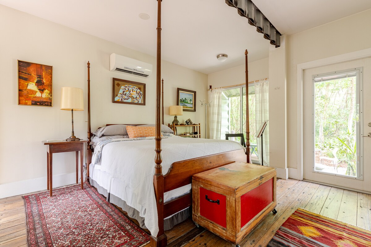 Un petit chalet paisible et privé récemment construit situé sur 1,3 acres clôturés, entouré d'une ferme de bétail de 200 acres. Pas de frais pour les animaux ! Le meilleur des deux mondes, Rose Cottage est à 3,5 minutes de l'I-75. Expirez en regardant votre chien profiter de la cour depuis le porche grillagé, faites une sieste en vous balançant dans le hamac ombragé ou écoutez les flammes crépitantes tout en faisant griller des guimauves sur le foyer. Institut Chi 1m. Micanopy, Paynes Prairie 8m. UF, WEC, HITS, Ocala ou Gainesville 20m. Uber pour les matchs de l'université de Floride !